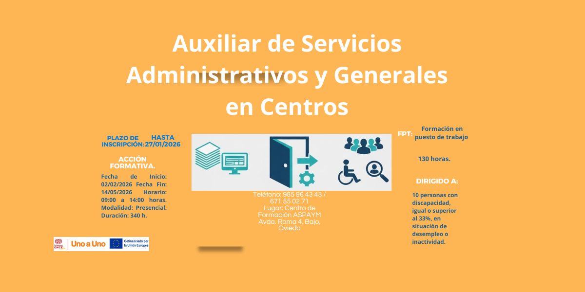 El objetivo principal es impulsar la empleabilidad de personas con discapacidad mediante una formación dual inclusiva en la formación de "Auxiliar de Servicios Administrativos y Generales en centros".