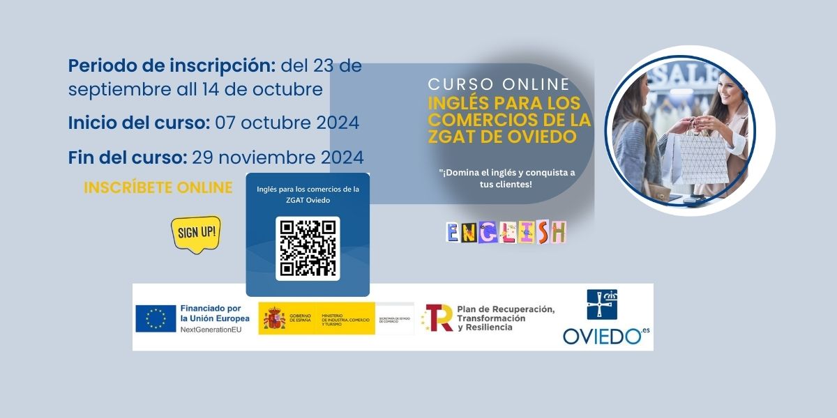 Formación en inglés online gratuita. Comerciantes ZGAT Oviedo.