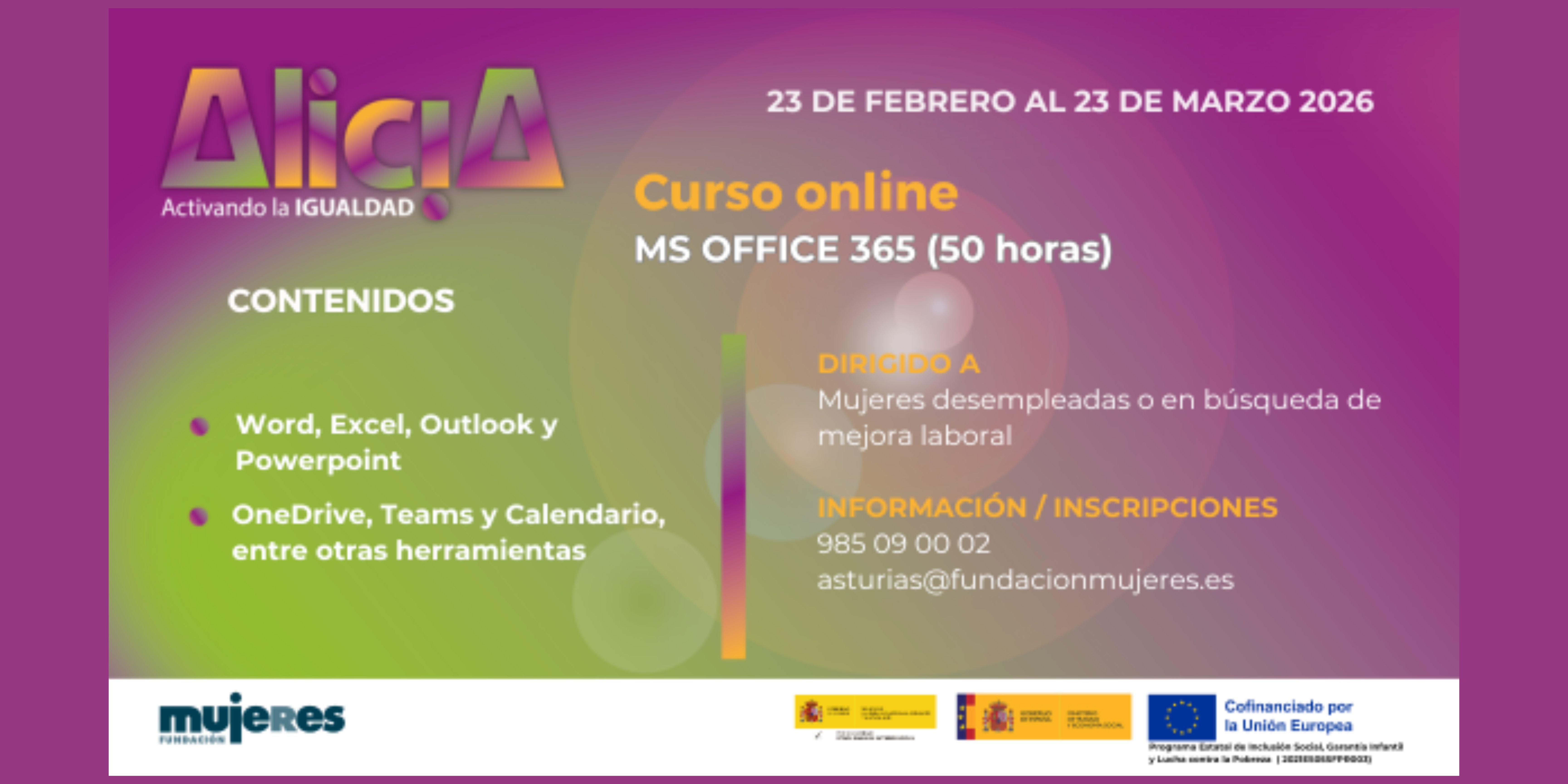 Estas acciones se enmarcan dentro del Programa Alicia: Activando la Igualdad, dirigido a acompañar a mujeres desempleadas o con interés en mejorar su situación profesional, mediante un itinerario integral y gratuito.