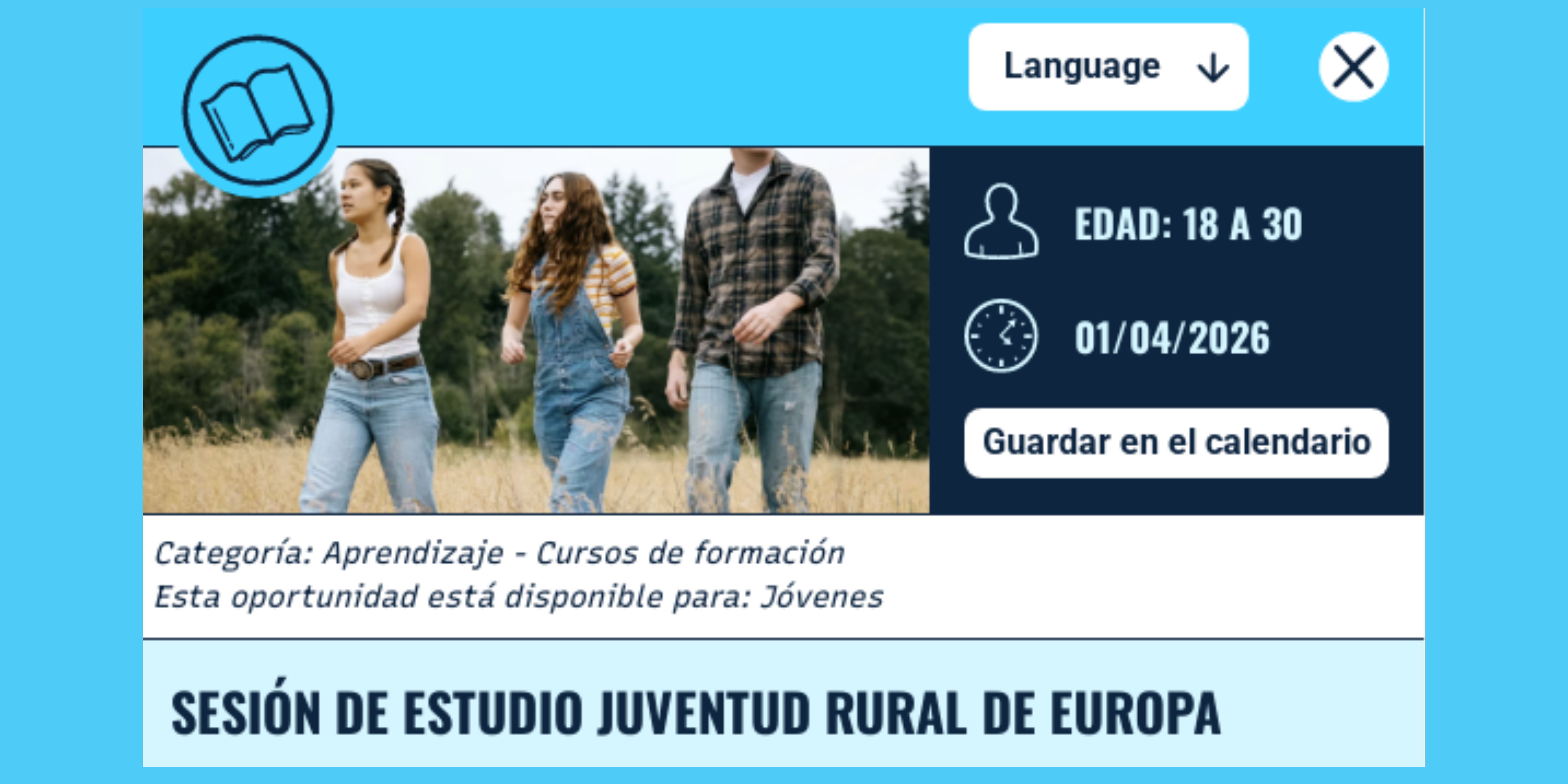 Rural Youth Europe (RYE), en cooperación con el Consejo de Europa y el Centro Europeo de la Juventud de Budapest (EYCB), invita a los jóvenes de las comunidades rurales a unirse a la sesión de estudio "Del desplazamiento a la acción: alfabetización mediática para el empoderamiento de la juventud rural" del 8 al 14 de marzo de 2026.