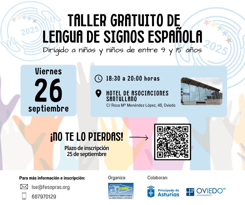 - Taller Básico de Lengua de Signos Española, para mayores de 16 años: martes, 23 de septiembre.