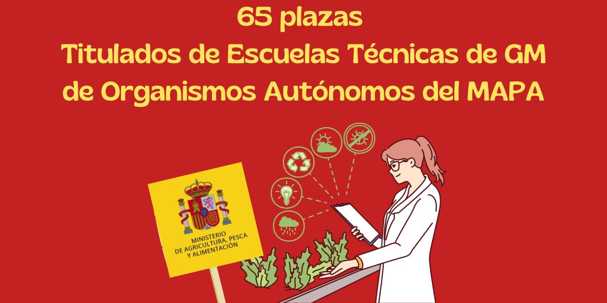 Se convoca proceso selectivo para cubrir 65 plazas de acceso libre, en la Escala de Titulados de Escuelas Técnicas de Grado Medio de Organismos Autónomos del Ministerio de Agricultura, Pesca y Alimentación, código 5014.